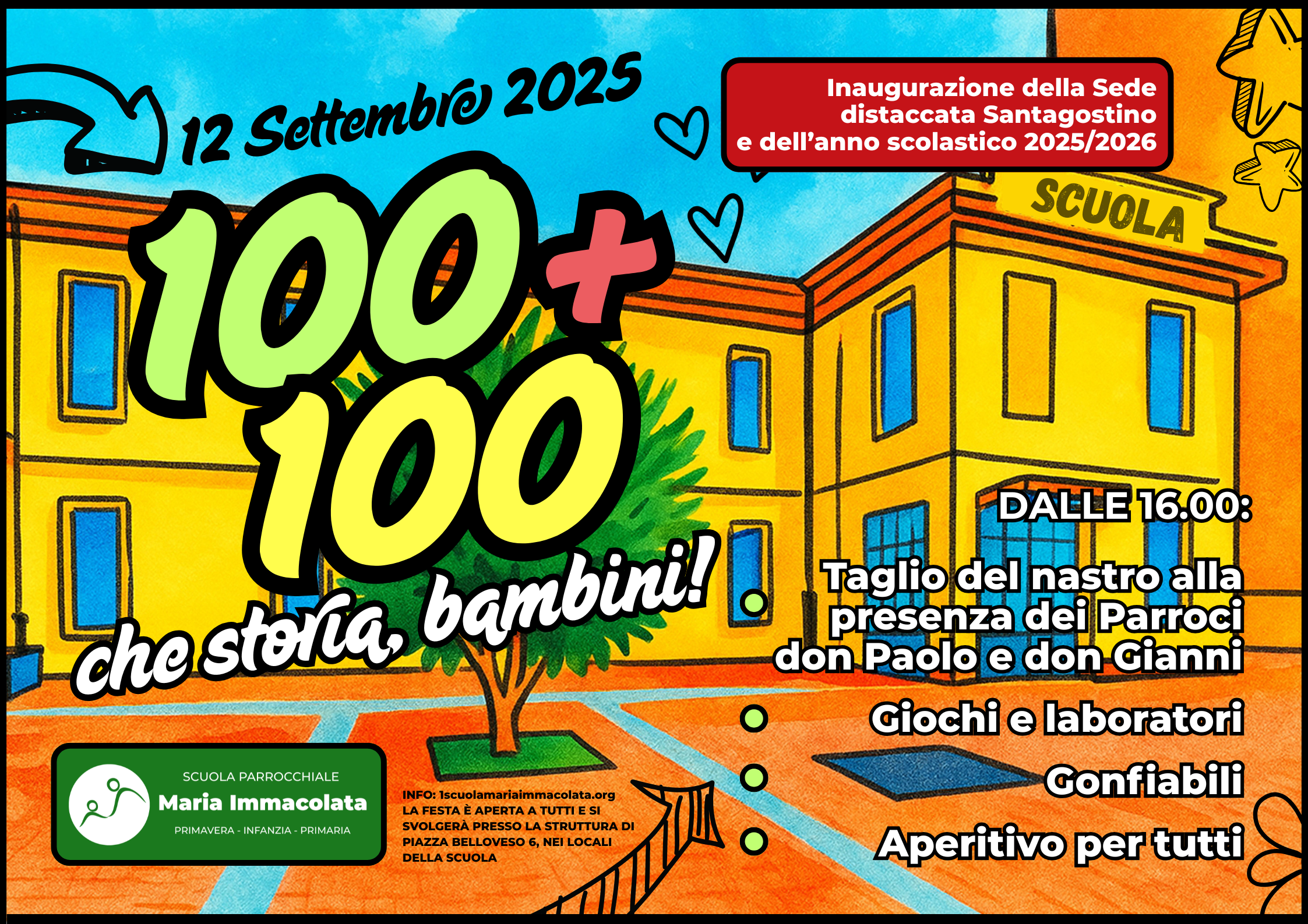 Vorremmo che fosse questa l’occasione per ricordare i 100 anni della Scuola Paolo Santagostino, che è stata fondata nel 1926. Una storia bellissima che oggi si intreccia con il percorso di un’altra scuola parrocchiale: la Scuola Maria Immacolata.