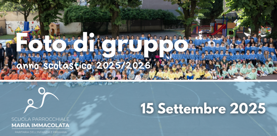 Lo scatto sarĂ realizzato dal nostro fotografo Massimiliano Stucchi e sarĂ poi visibile agli ingressi delle scuole e sulle circolari. Nella fotografia saranno presenti 322 bambini e circa 50 dipendenti per cui non sarĂ semplice garantire una posa perfetta. Chiediamo a tutti i genitori pazienza e collaborazione: la foto verrĂ poi condivisa con le maestre e, nei due giorni successivi allo scatto, chiederemo eventuali modifiche tramite fotoritocco. Anche se non è facile e comporta un’onere per la scuola, ci teniamo a realizzare una foto di gruppo con tutti i bambini come segno di unitĂ e condivisione, per iniziare tutti insieme l’anno scolastico.Â